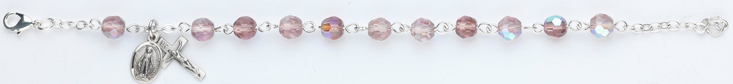 6mm Light Amethyst Rosary Bracelet with Sterling Silver Crucifix & Miraculous - Boxed