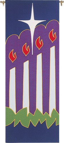 To adorn any room or hall or to be used as a processional banner, lecturn cover or altar cover. Each of these tapestries is a unique creation of Flemish artists. These tapestries create a warm atmosphere, inspiring quiet and prayer. They are processed with the utmost artistic skill and care, manufactured in fabric with pronounced structure, lined and interlined, with a fine combination of colourful applique with gold and wool thread embroidery. Top and bottom are finished with an open hem to hold rod. The loops and fringes are available at extra charge and are not included in the sizes, please call for more details. A hanging rod with two supports is only supplied for sizes 31-1/2 x 12-1/2: and 47" x 18". *These tapestries are special ordered and shipped directly from Belgium, please allow six to eight weeks for delivery.