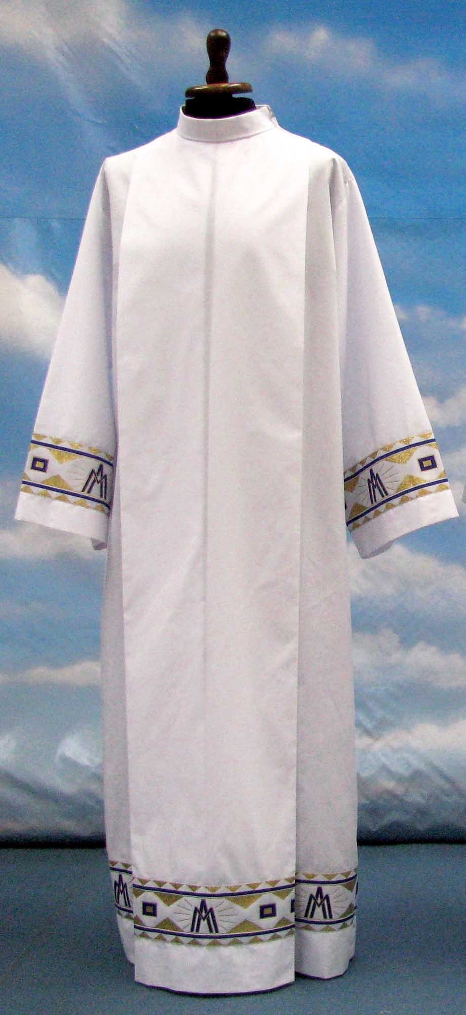 Alb in MISTO COTONE fabric (40% cotton 60 %polyester), with Marian banding, zipper on the shoulder. All albs and surplices special made to order and imported from Europe, please allow six weeks for delivery.