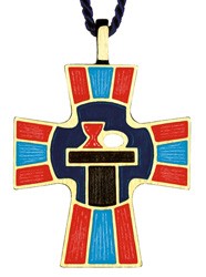 Eucharistic Minister Pendant, 2 3/4", solid antiqued bronze with colors on 33" blue cord in gift box.