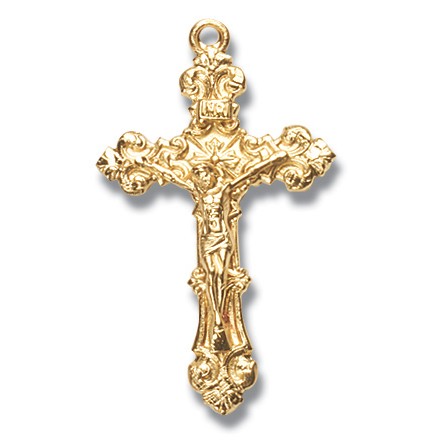 Gold Over Sterling Silver Medium Crucifix Baroque Edge w/18" Chain - Boxed