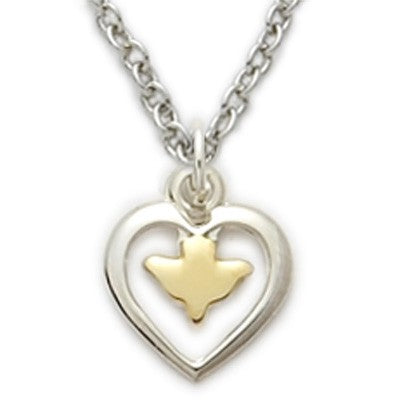 Heart Shaped with Gold Holy Spirit Dove Sterling Silver Necklace w/16" Chain - Boxed