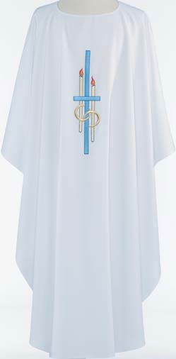 Marriage Vestment, soft, fully machine washable, wrinkle resistant polyester. Measures approximately 60" wide and 52" long. Embroidered on the front and back, matching understole is included.