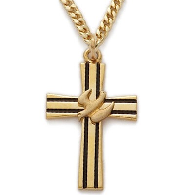 Cross-shaped Holy Spirit Dove Cross 24K Gold over Sterling Silver Inspirational Necklace Religious on a 24" chain. Patron of . Approx. size 5/8". Special Order, Please allow 7-14 Days for Delivery.