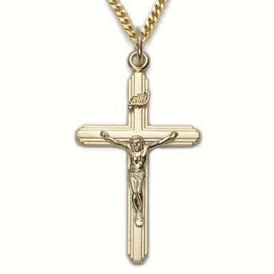Mens Crucifix 24K Gold over Sterling Cross Jesus Christ on a 24" chain. Approx. size 1-3/8"x7/8". Special Order, Please allow 7-14 Days for Delivery.