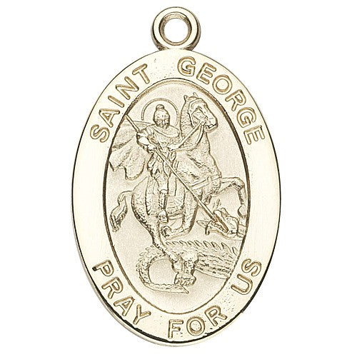 14K Oval St George w/14K Jump Ring Boxed From the absolute finest collection of religious medals ever made. Thousands of original, beautiful, intricate designs hand-sculpted by master die makers in the early 1900s. Made of only the finest materials available by skilled American craftsmen using up to a 12-step manufacturing and finishing process.