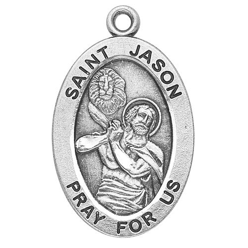 Sterling Oval St Jason 20" Chain Boxed From the absolute finest collection of religious medals ever made. Thousands of original, beautiful, intricate designs hand-sculpted by master die makers in the early 1900s. Made of only the finest materials available by skilled American craftsmen using up to a 12-step manufacturing and finishing process.