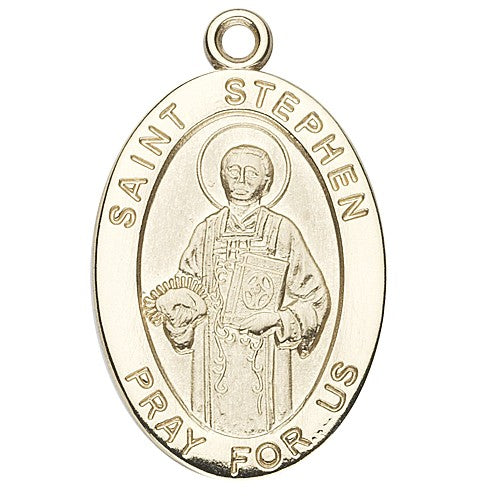 14K Oval St Stephen w/14K Jump Ring Boxed From the absolute finest collection of religious medals ever made. Thousands of original, beautiful, intricate designs hand-sculpted by master die makers in the early 1900s. Made of only the finest materials available by skilled American craftsmen using up to a 12-step manufacturing and finishing process.