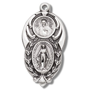 Sterling Silver Miraculous & Scapular Medal w/18" Chain - Boxed