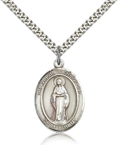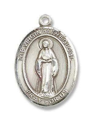 Mens Sterling Silver Virgin of the Globe Pendant on a Stainless Silver Heavy Curb Chain. 1 x 3/4 Unusual & Specialty VIRGIN of the GLOBE medal.