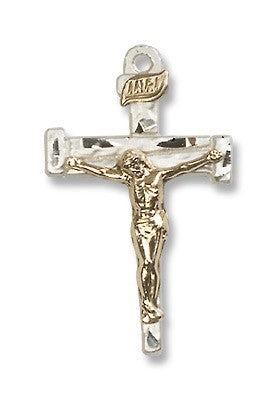 Womens Two-Tone GF/SS Nail Crucifix Pendant on a Sterling Silver Lite Curb Chain. 1 1/8 x 5/8 Crucifix medal.