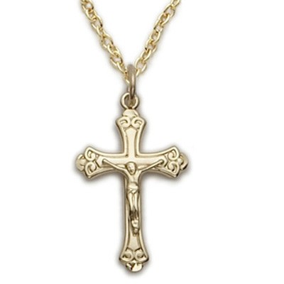 Womens Crucifix 14K Gold Filled Cross Jesus Necklace on a 18" chain. Approx. size 5/8"x1/2". Special Order, Please allow 7-14 Days for Delivery.